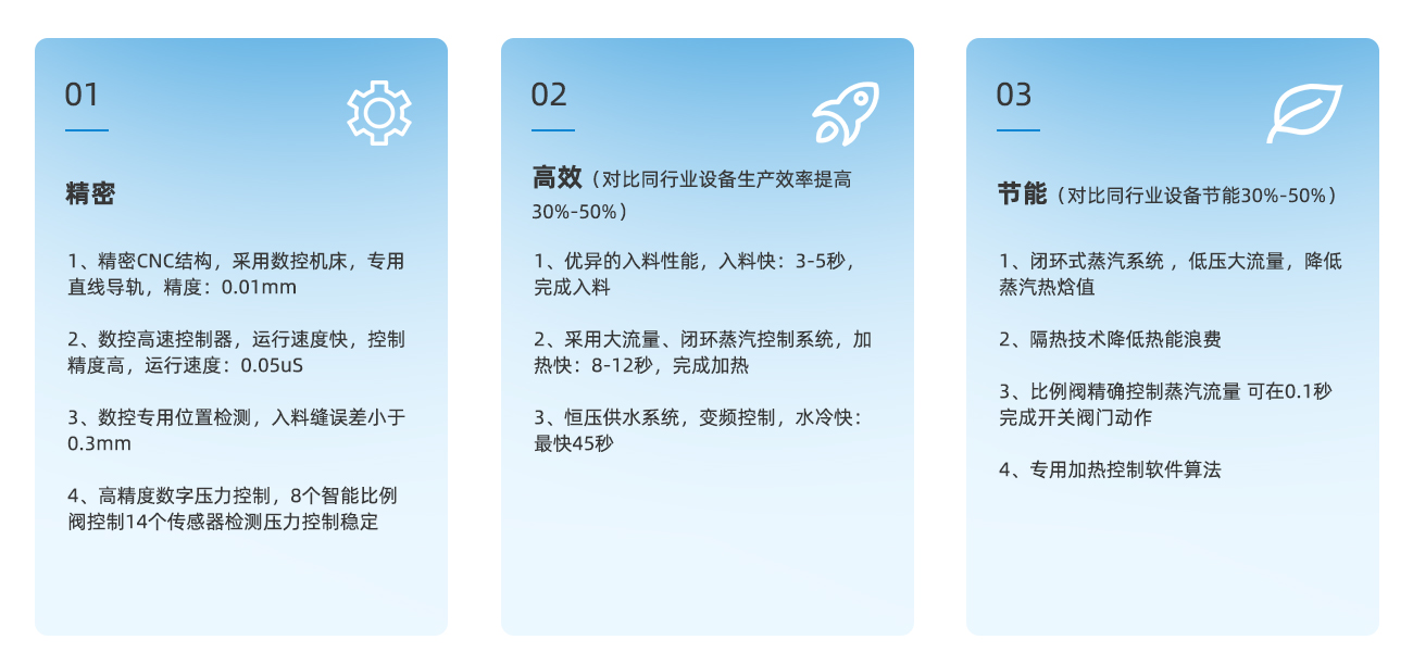 稳定的加热系统,蒸汽压力误差小于0.05巴