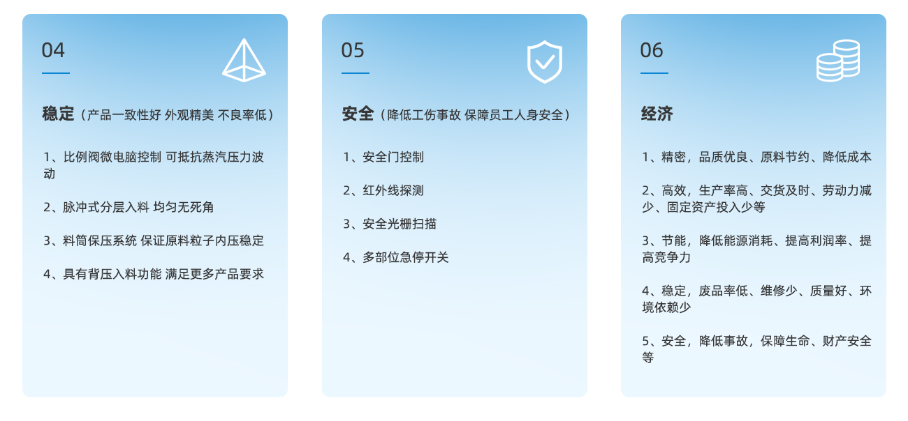 -该机器的高速进料、快速加热和冷却系统使生产力提高 30%-50%,其节能特性和稳定的操作有助于长期节省成本。