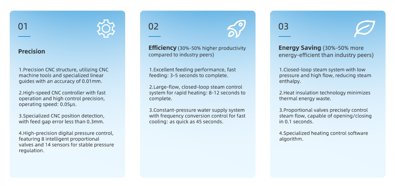 | Equipment Advantages | Steam Pressure Control Method | High-precision digital proportional valve |