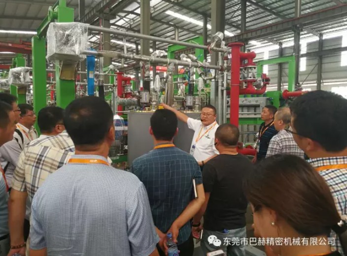 当天下午,到场嘉宾集体前往东莞市巴赫精密机械有限公司进行了参观交流,巴赫公司总经理时宏伟先生亲自为嘉宾们做了现场讲解,毫不保留的展示了快意巴赫领先行业的EPP成型机技术和设备。嘉宾们为时宏伟先生为推动行业发展而做出的贡献纷纷点赞。